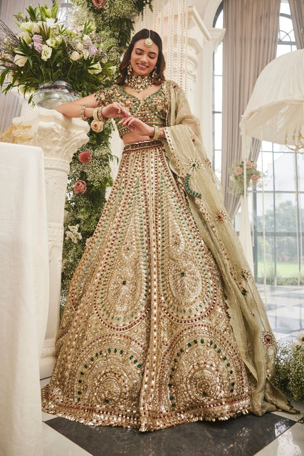 NEWBESTSELLER CELEBRITIES CELEBRITY SPOTTED IN SWISH lehenga New NEW ARRIVALS scarlet & emerald Scarlet And EmeraldIsha Multani in Emerald Eclipse Lehenga and Customised Blouse- Regular price