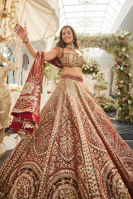 CELEBRITIES CELEBRITY SPOTTED IN SWISH lehenga NEW ARRIVALS scarlet & emerald Scarlet And EmeraldNiki Mehra in Echoes of Gold- Regular price