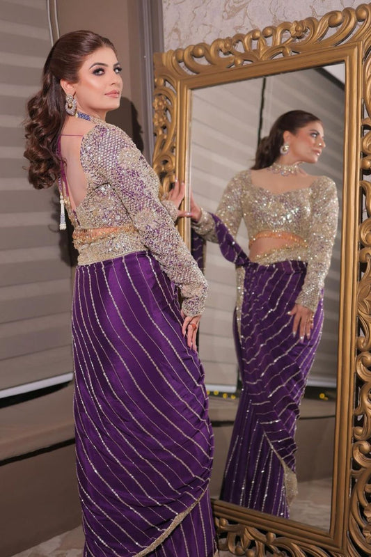 Aastha nagpal in riyaaz purple organza lining shantoon phool bahar border saree with blouse