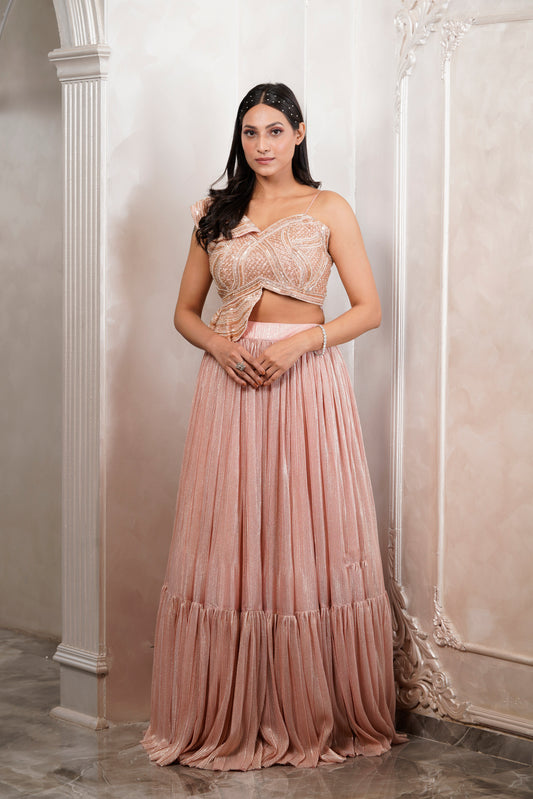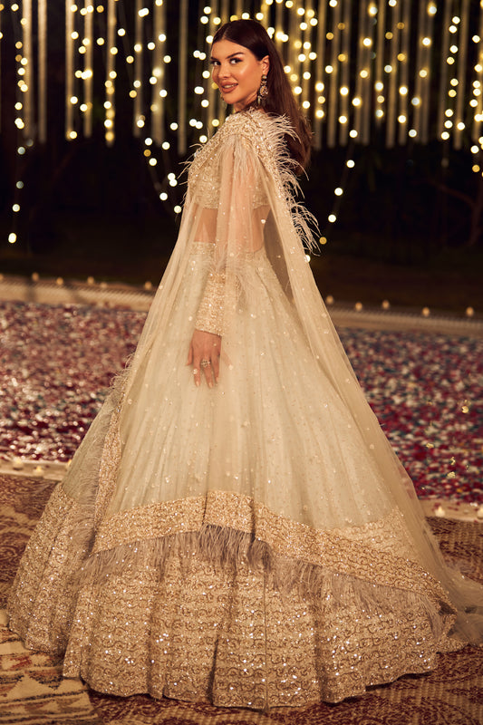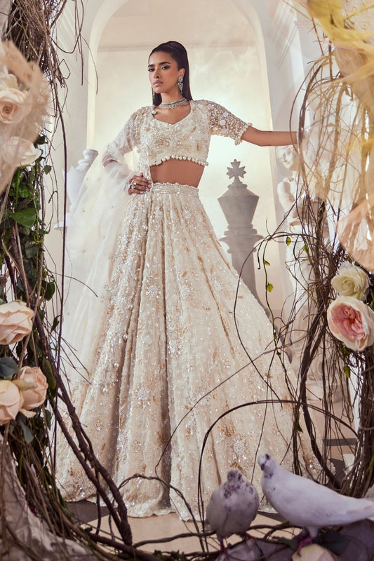 Aphrodite ivory embellished crepe lehenga and sweetheart neck blouse and dupatta
