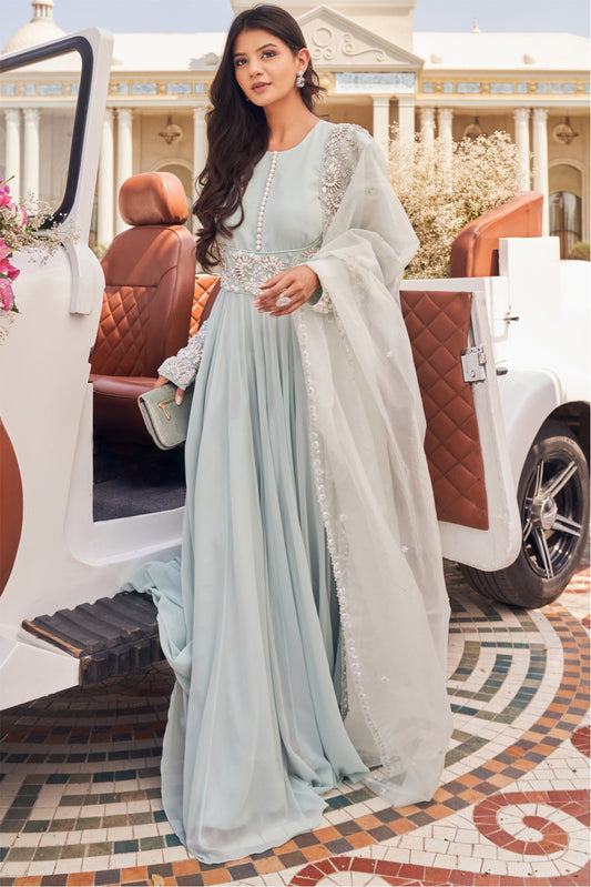 Aqua lehenga bridal powder blue net blouse and lehenga with dupatta