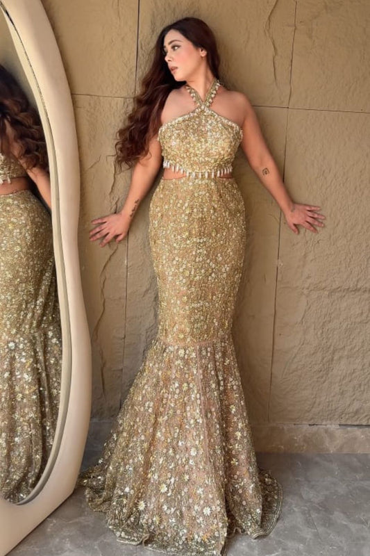 Ankita arora in shehnaaz ivory kora organza cutdana embellishment & embroidered lehenga set