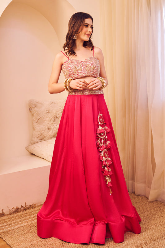 Aashiyaan pink satin silk lining shantoon embroidery bahar jaal lehenga set