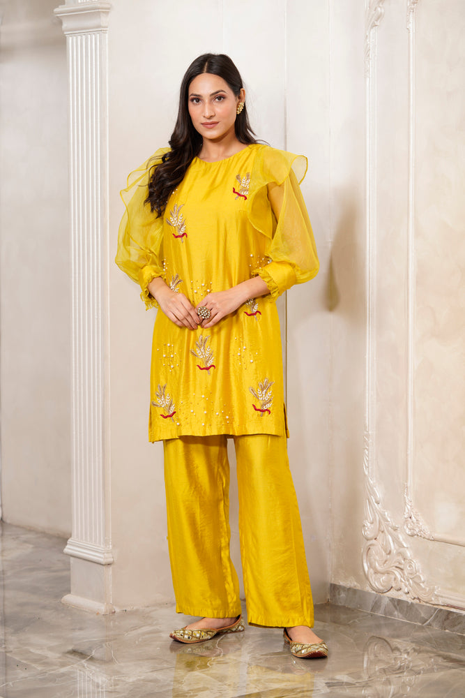• It has beautiful embellishment on kurta with organza balloon and ruffled sleeves.