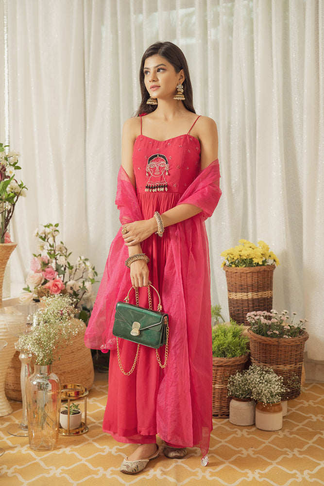 •Hotpink Georgette Sleeveless Kurta