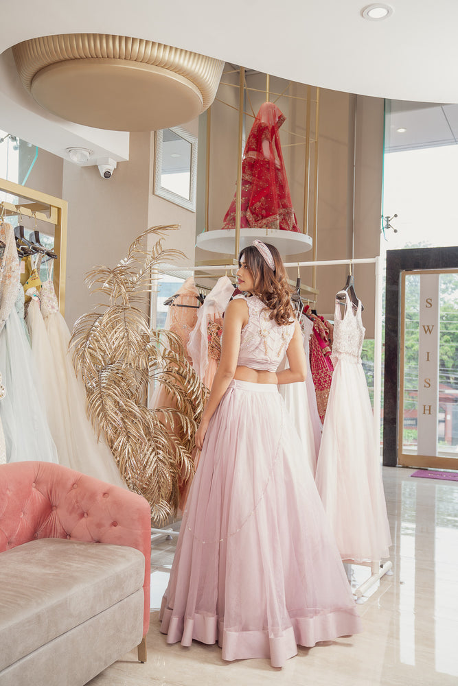 •Lilac Full Flare Lehenga With Sleeveless Blouse