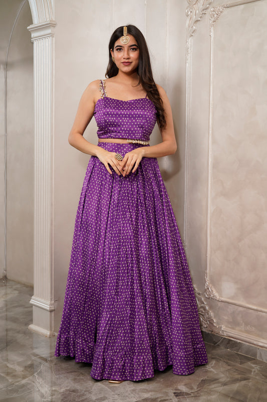 Blue pearl glass satin hand embellished floral sweetheart lehenga set
