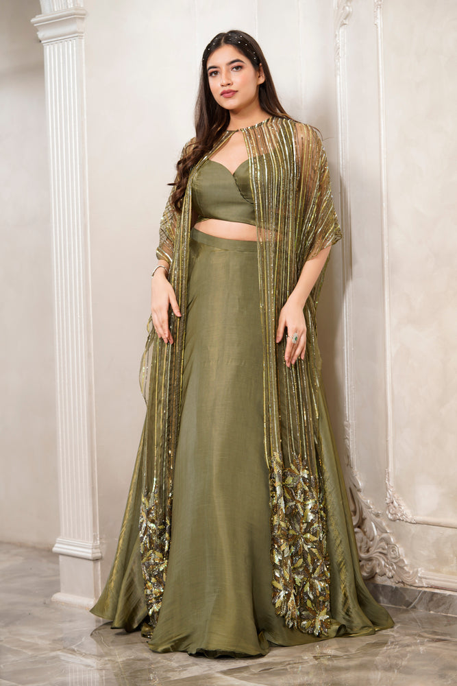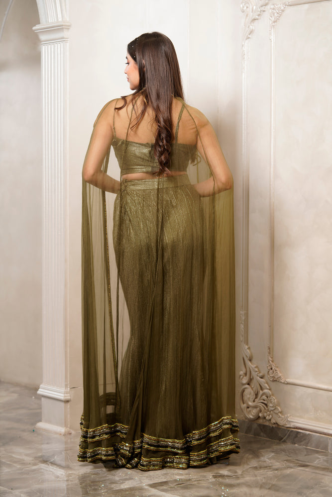 • It has a beautiful blouse cape with heavy embellishment. •Tailored fit.