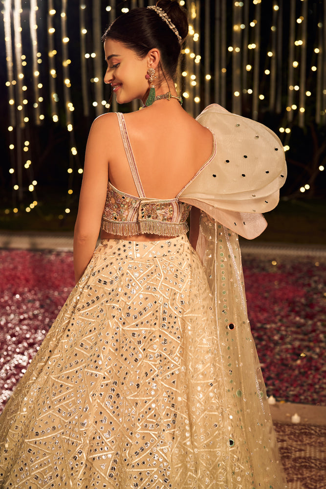 • You will receive a Georgette leather worked skirt with mirror work blouse