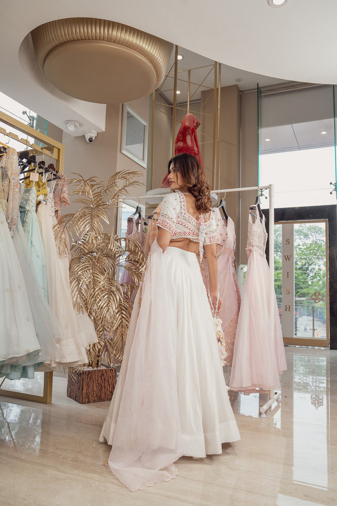 •Chanderi Silk Full Flare Lehenga With V neckline Blouse