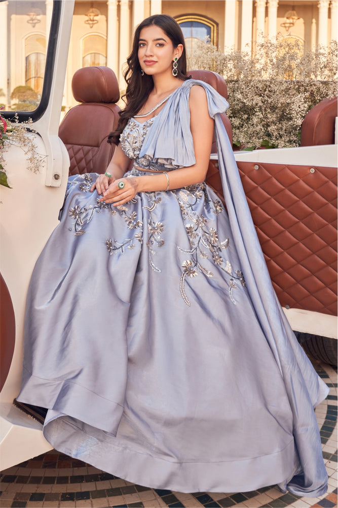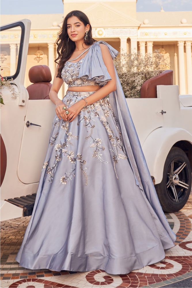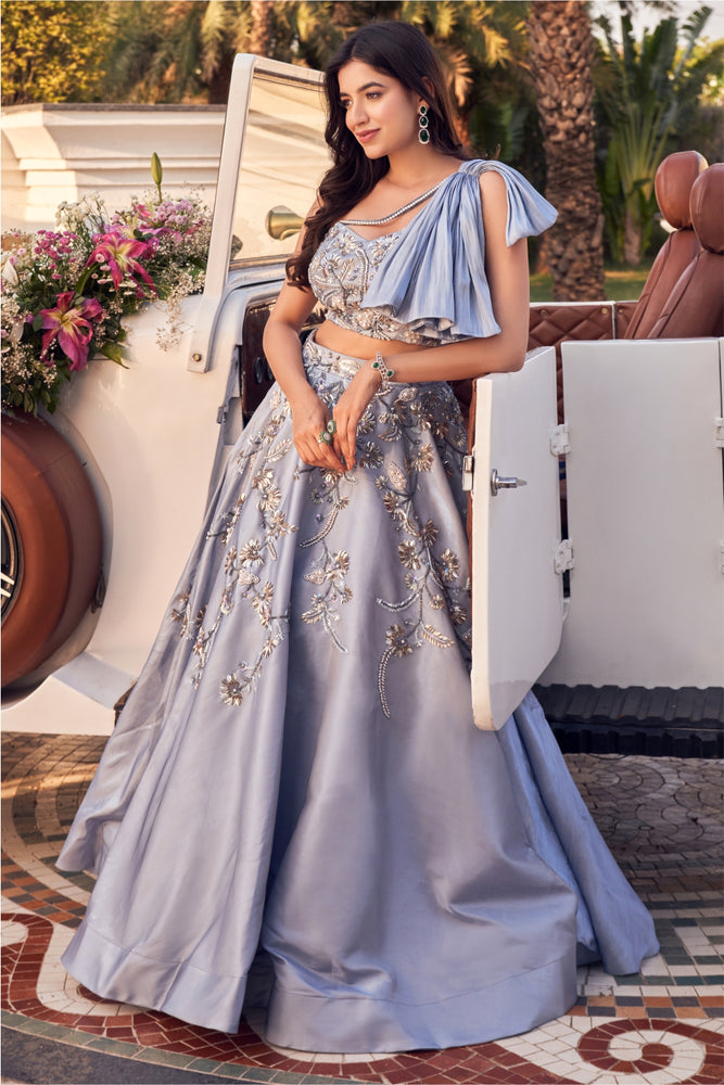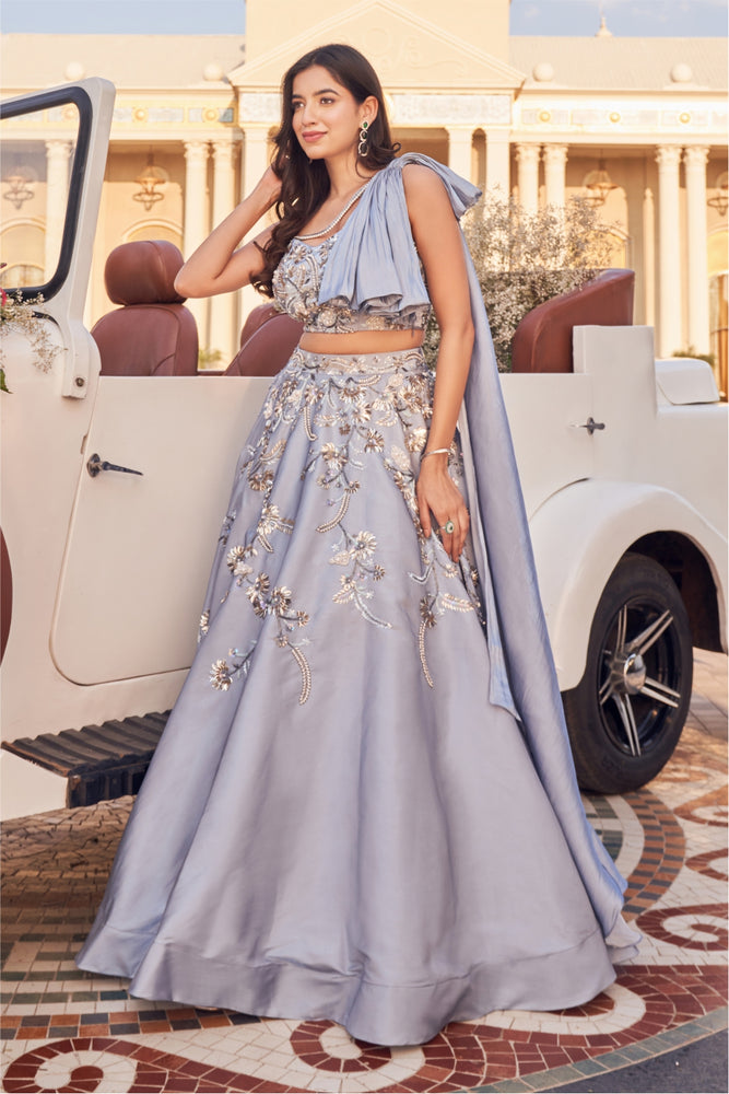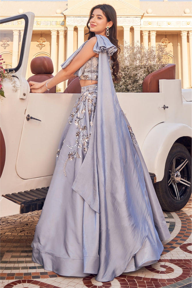 • It has beautiful embellishment all over the blouse and bow detailing. • It has a beautiful embellished skirt .