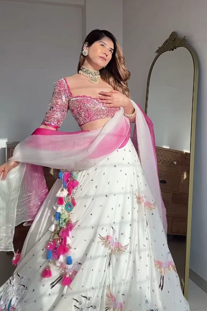 - Embroidery details: cutdana, sequence, crystal and nakshi work