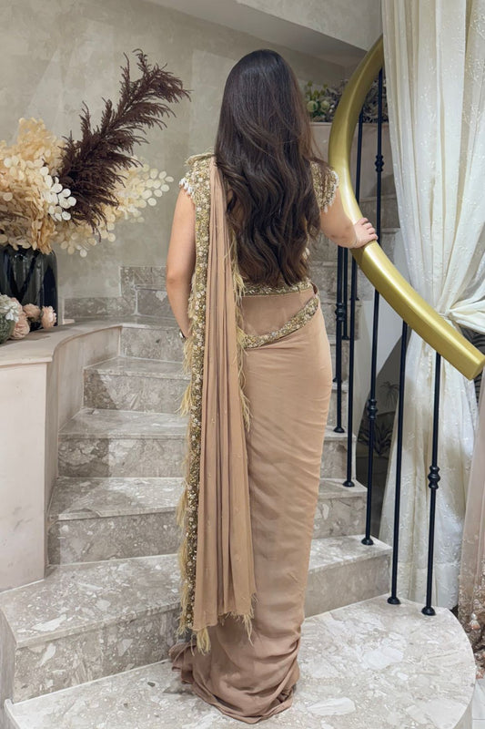 Blush whisper pink crepe embellished cutdana pre drapped saree