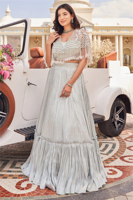 Serene mermaid lehenga powder blue georgette net lehenga with blouse