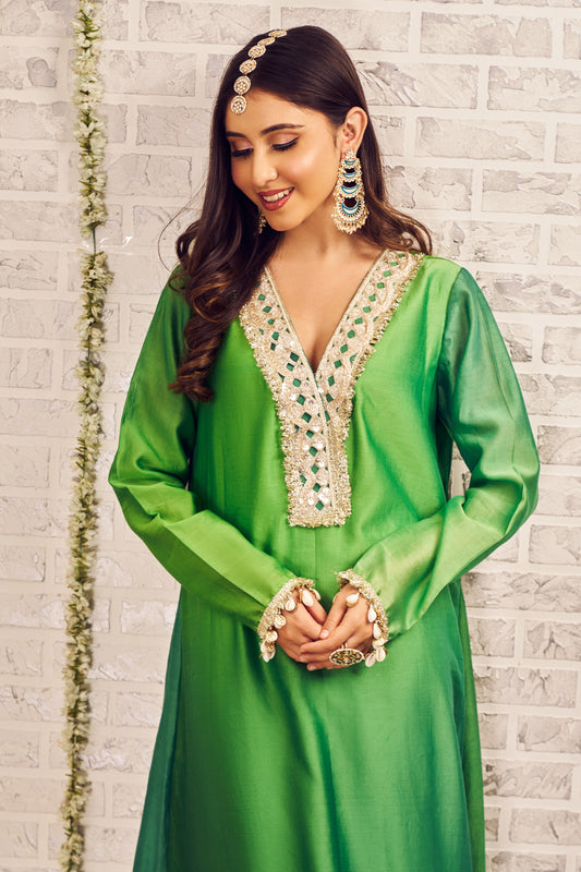 Shagna di ruhaniyat green chanderi kurti with pants set