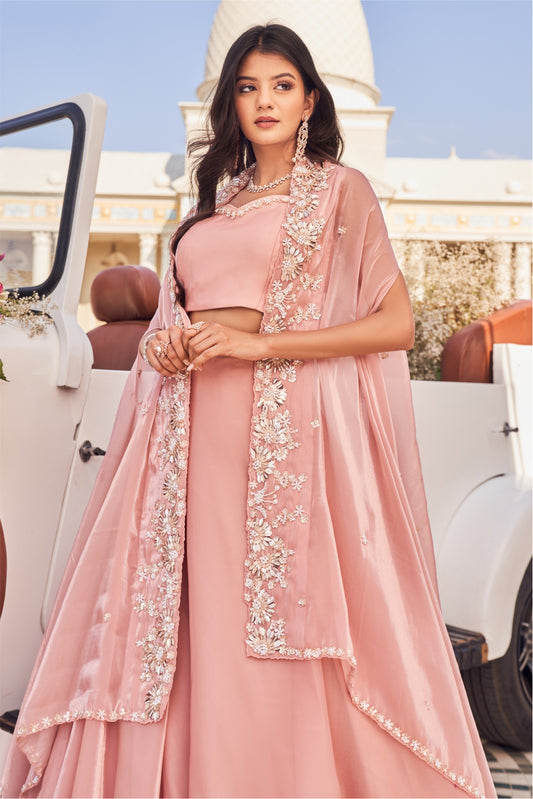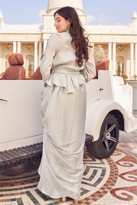 Laurel papersatin bustier and dhoti with full sleeve embellished jacket and belt