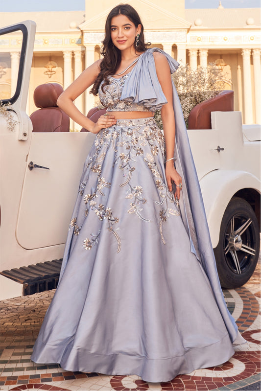 Laurel 1 papersatin bustier and dhoti with full sleeve embellished jacket