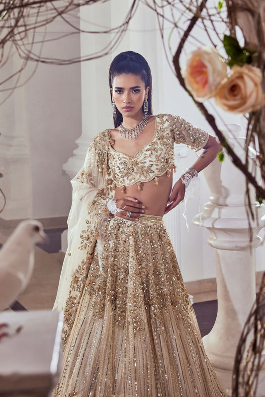 Hestia gold embellished net lehenga and blouse with dupatta
