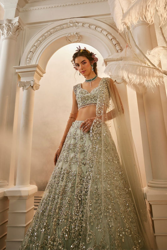 Artemis mint green net sequin work lehenga and blouse with dupatta