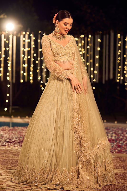 Champagne luxe lehenga bridal net embellished blouse and lehenga with dupatta