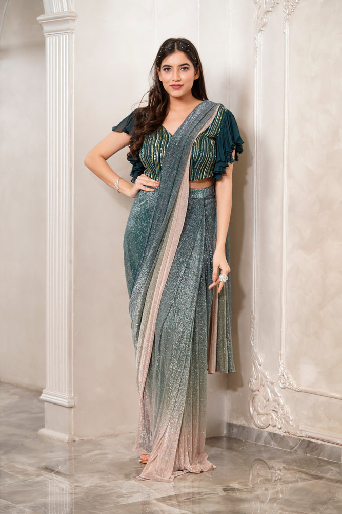 Pack Contains: 1 Blouse 1 Skirt with drape