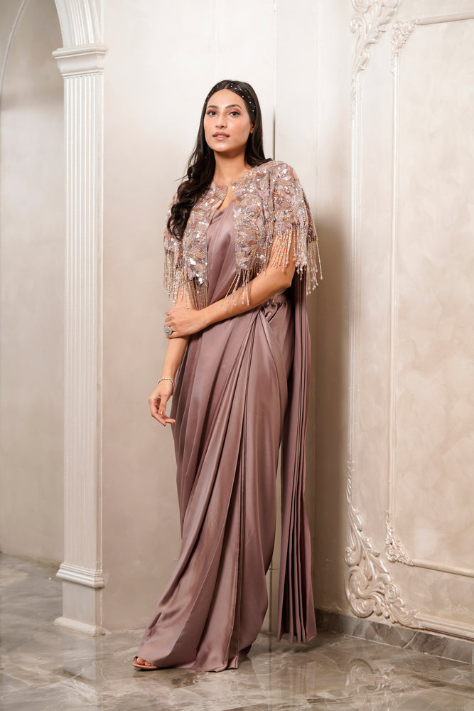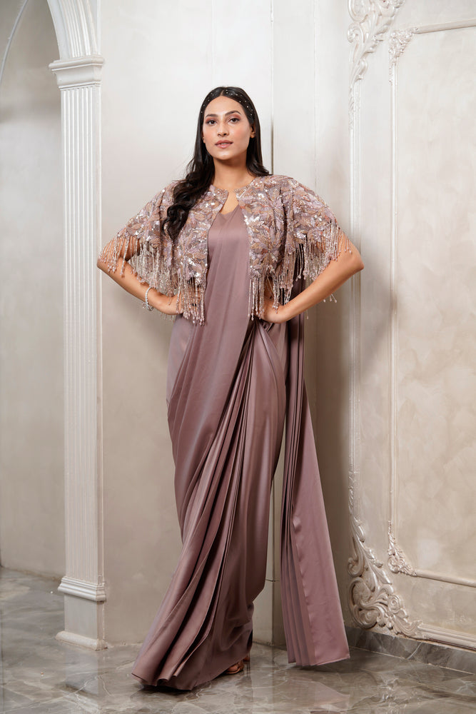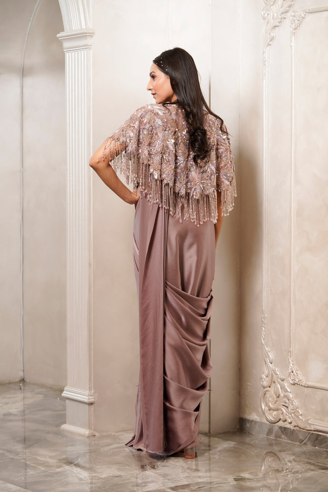 • It has a beautiful cape with heavy embellishment and tassels all around.