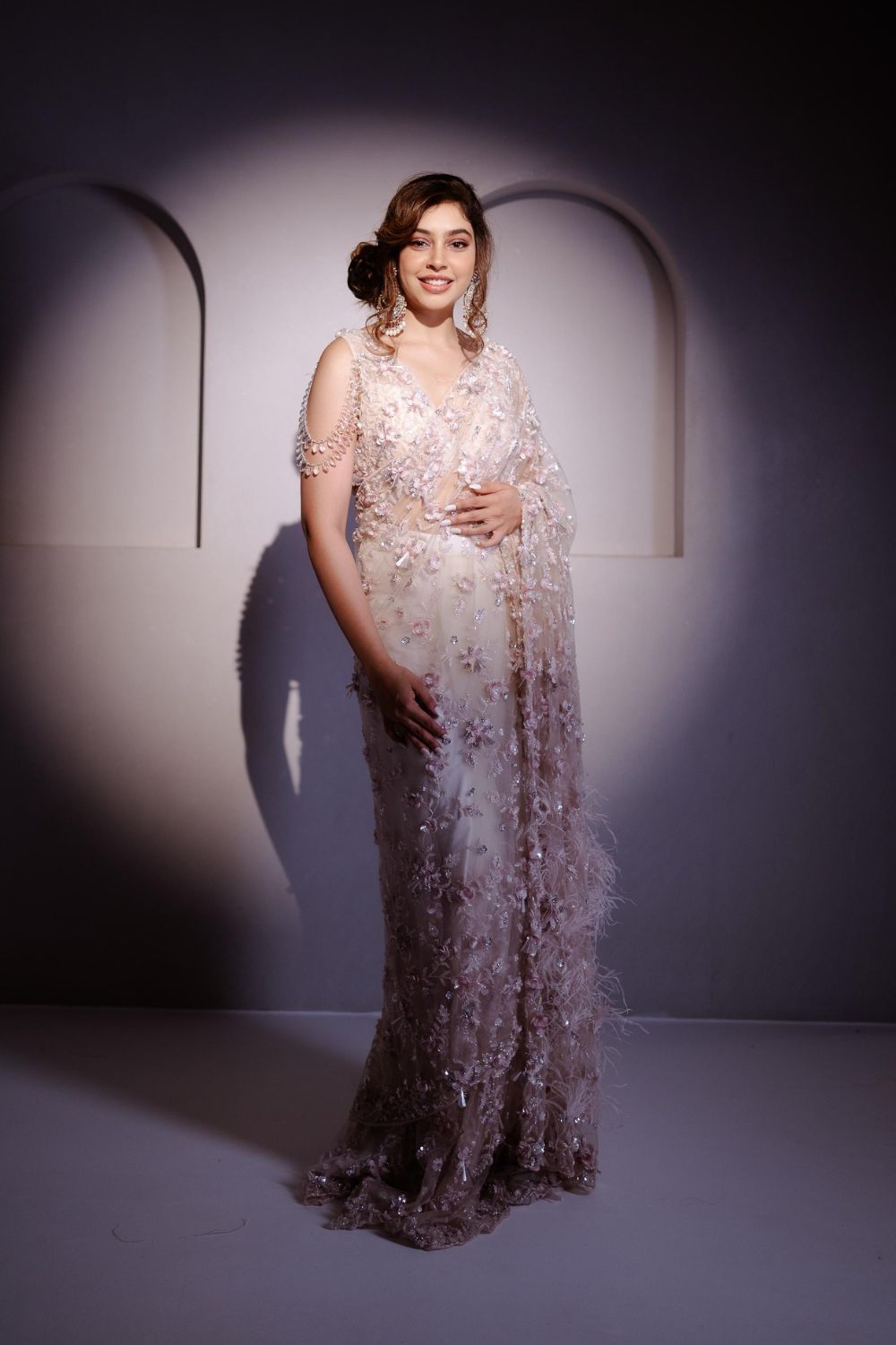 Niti Taylor In Fortuna Baby Pink Embellished Net Saree and Blouse