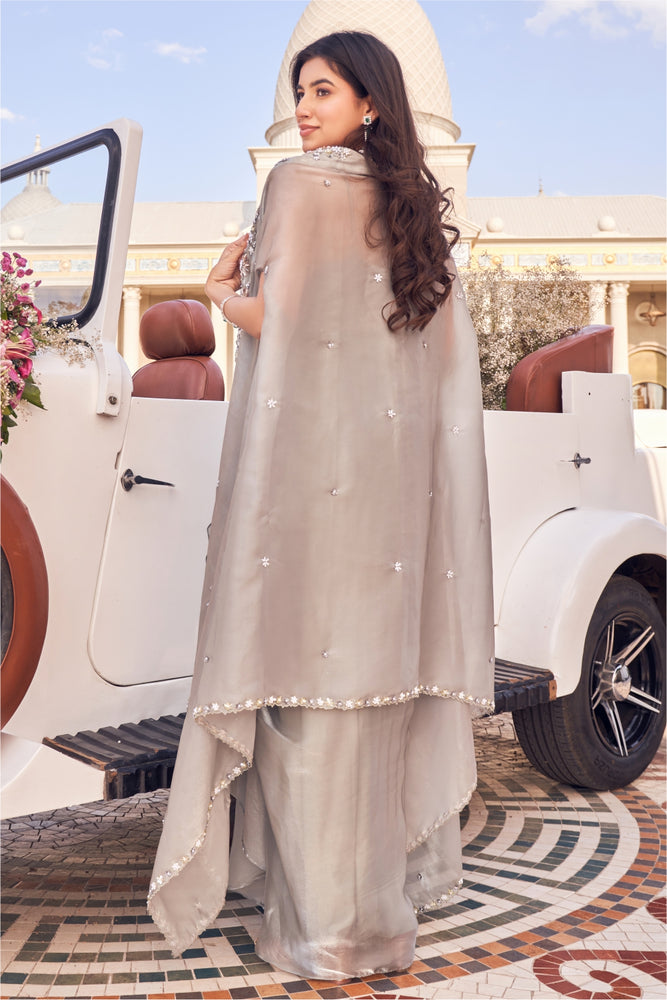 Jannet 1 Paper Organza Gown with Embellished Cape