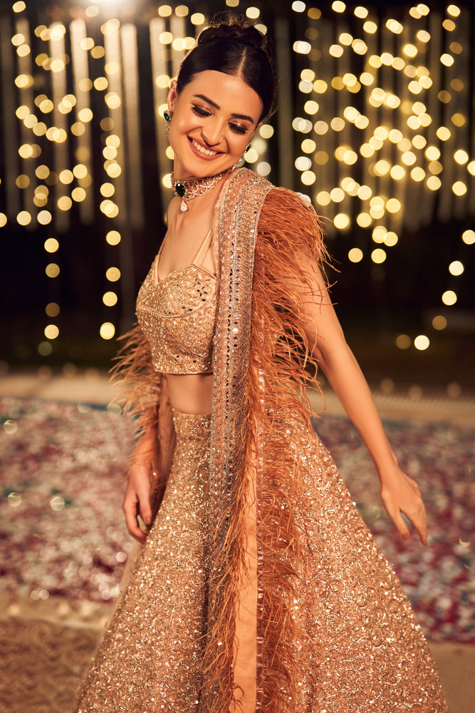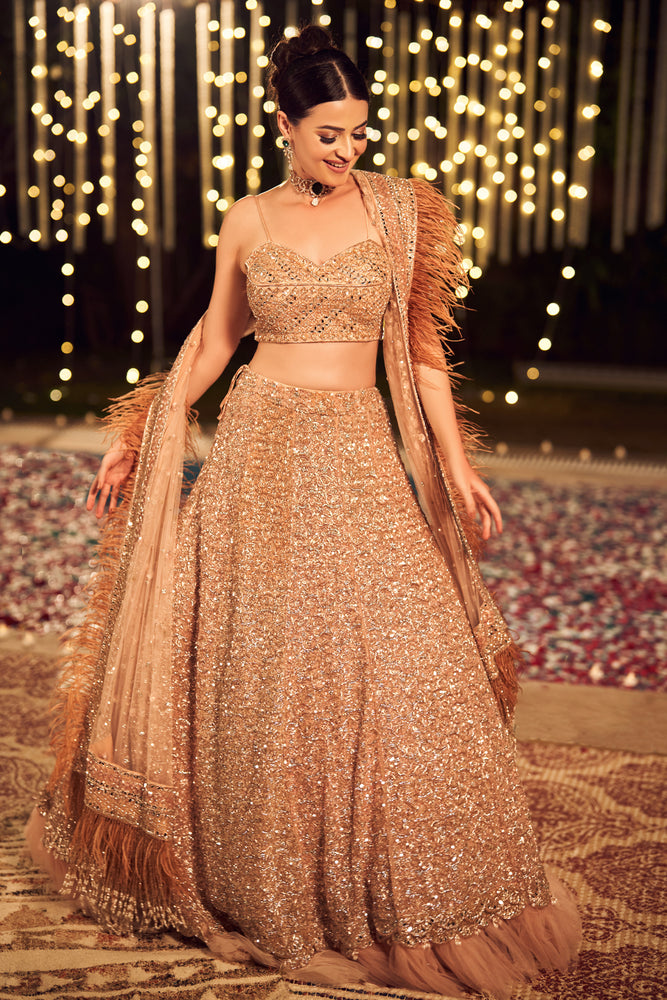 • You will receive a heavily embellished Rosegold Colored Lehenga