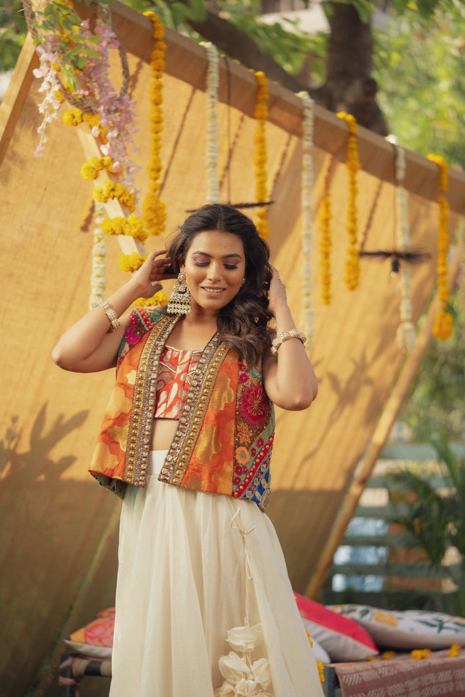 •Chanderi Lehanga With Silk Jacket & Blouse