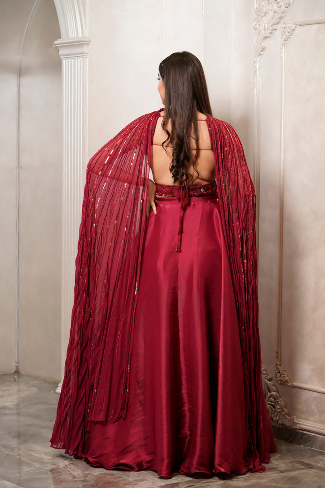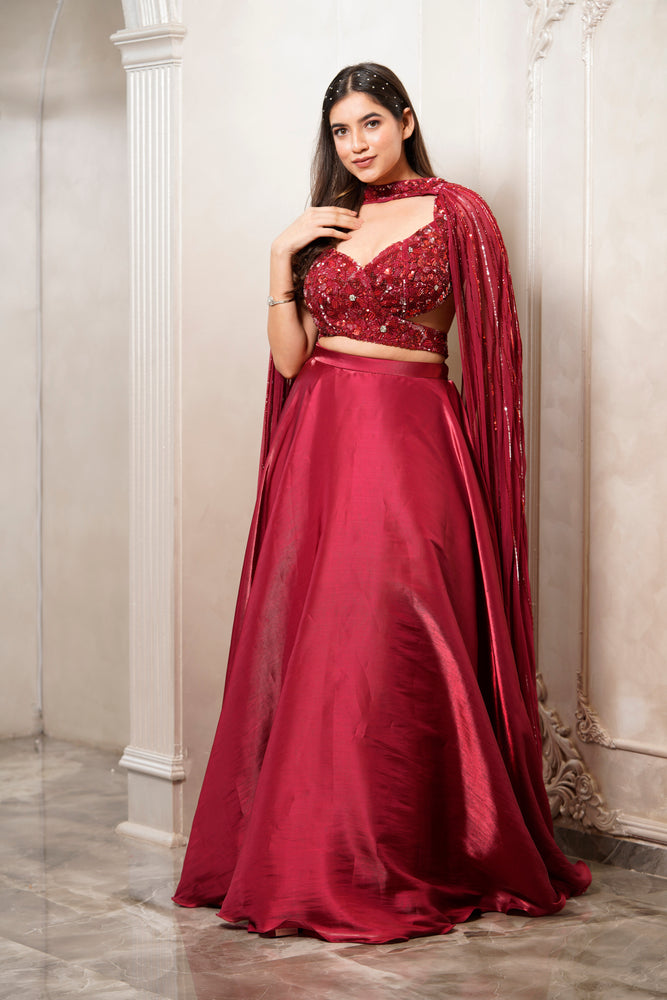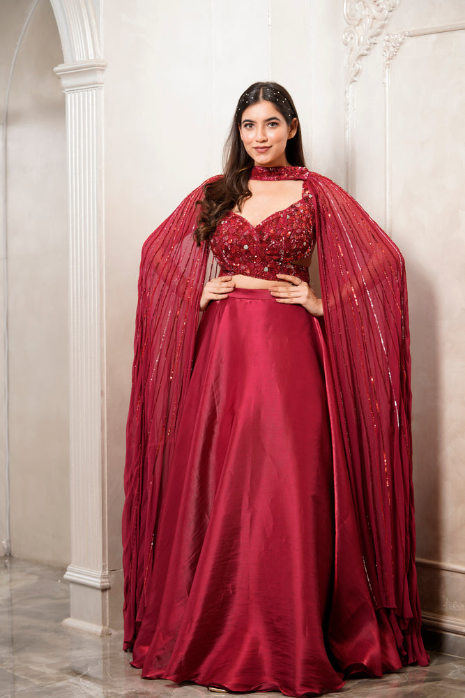 • It has a beautiful blouse with heavy embellishment and an embellished dupatta with choker. •Tailored fit.