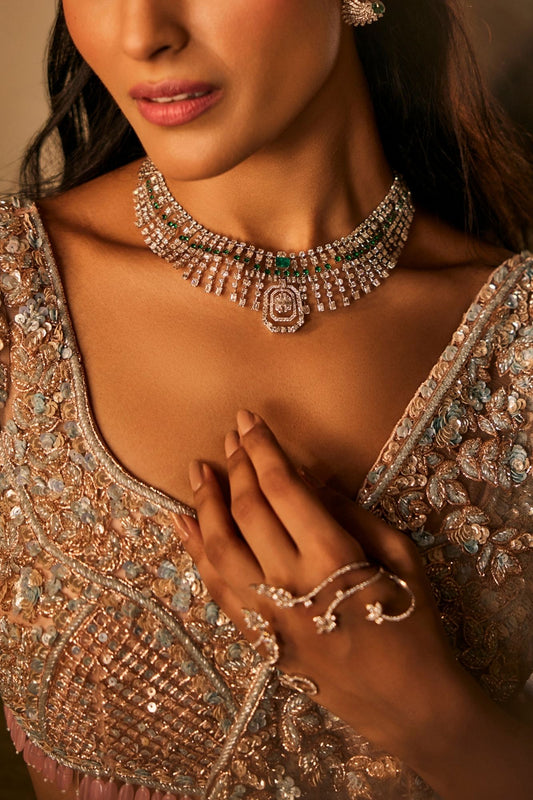 Mellow maharani green banarasi embroidery sequin ambrosia jacket kurta lehenga set