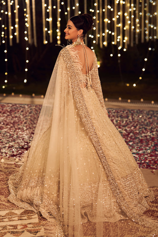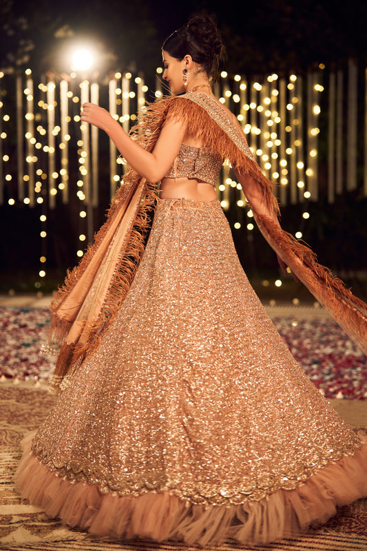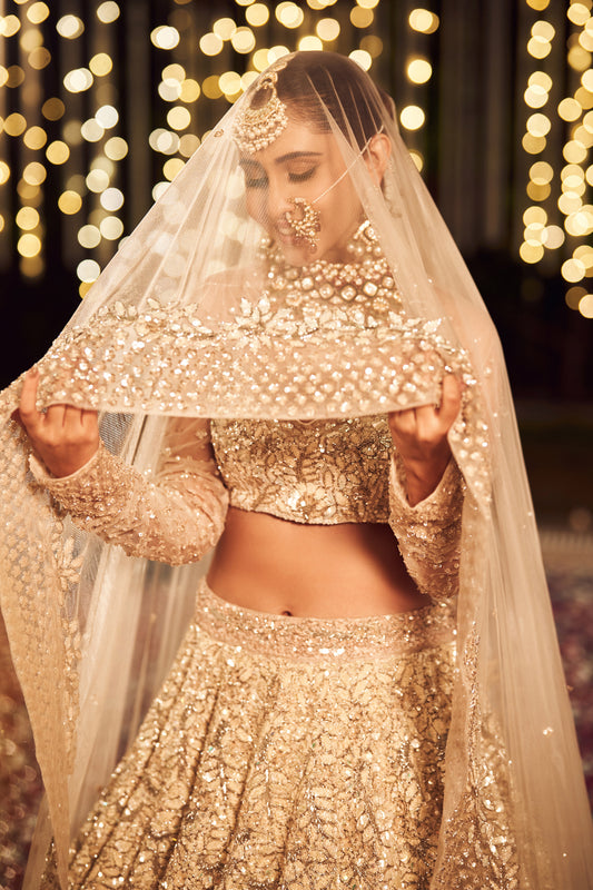 Champagne luxe lehenga bridal net embellished blouse and lehenga with dupatta