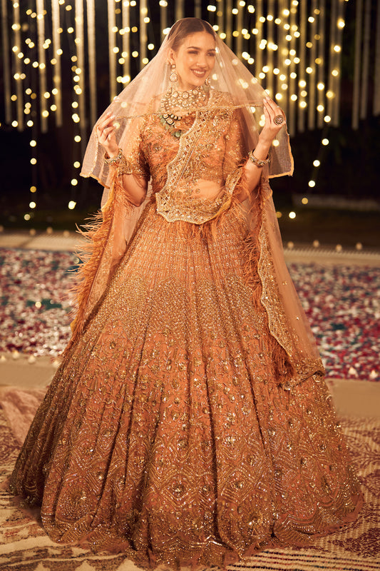 Romantic rust lehenga bridal net embellished blouse and lehenga with dupatta