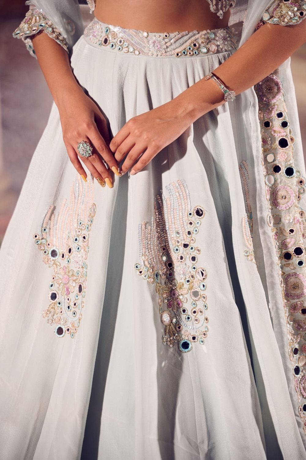 Darya Powder Blue Mirrorwork Lehenga with dupatta