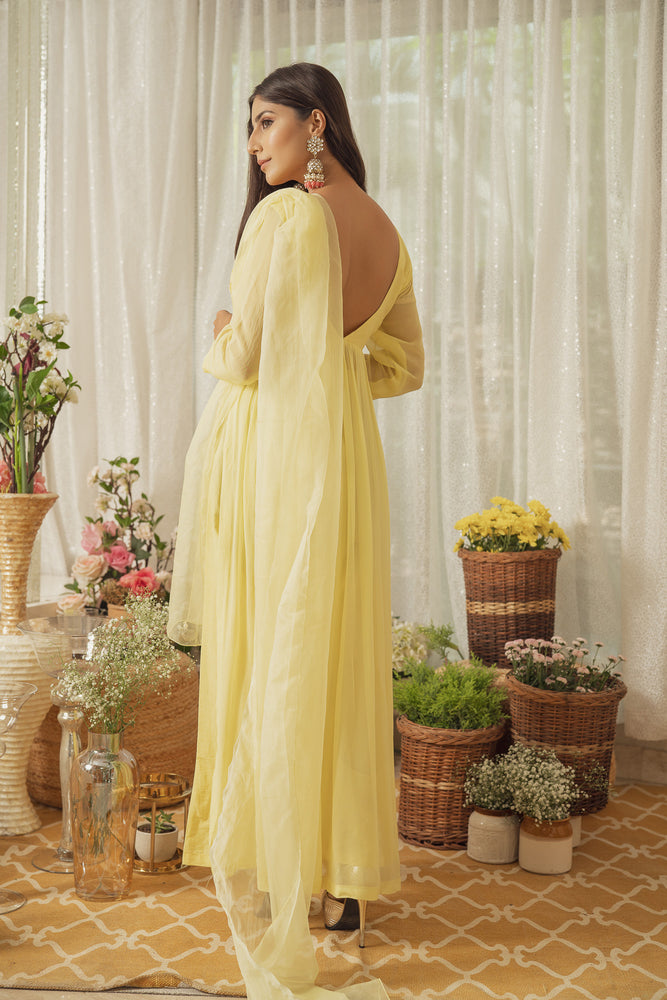 •Lemon Yellow Georgette Full Sleeves Kurta