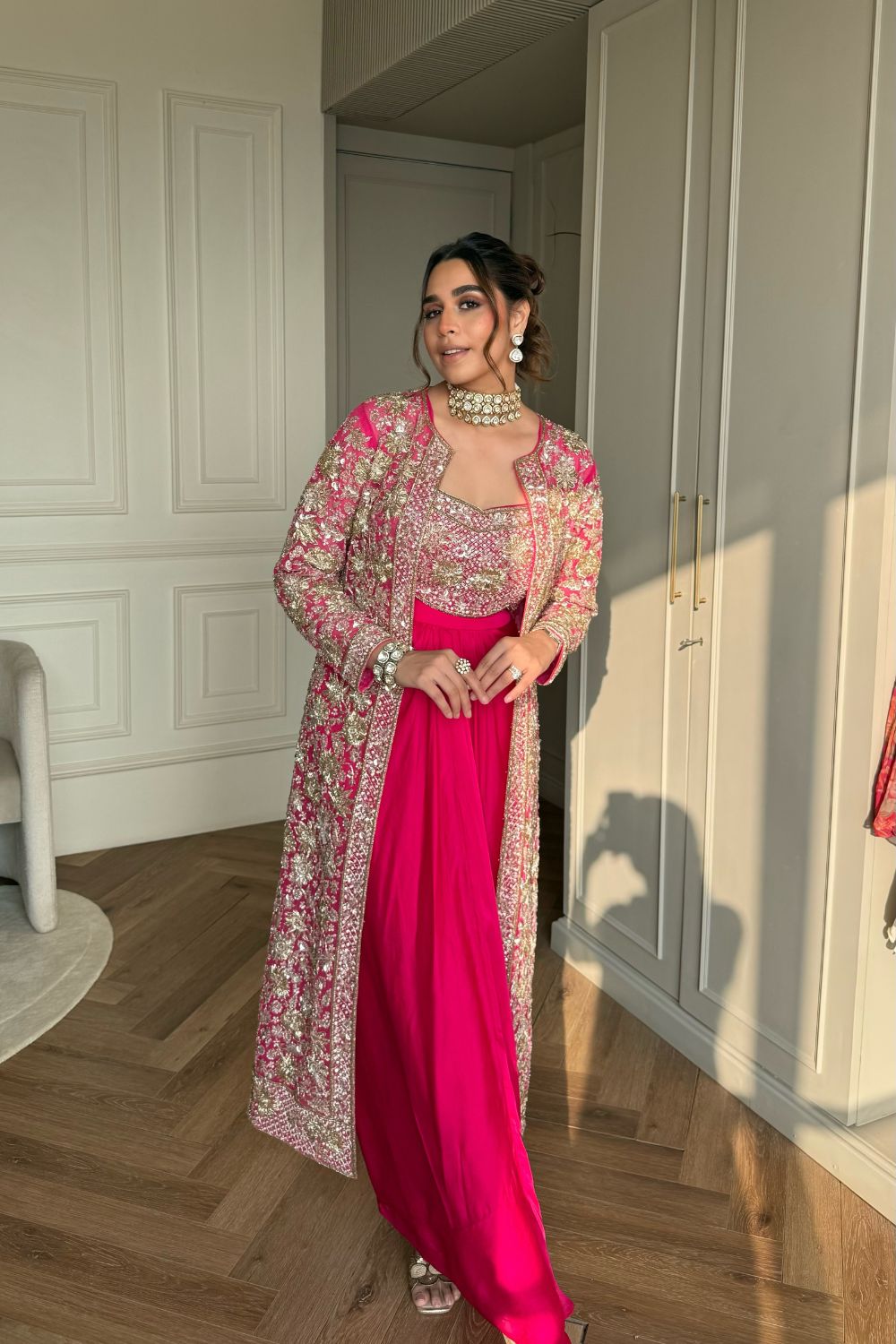 Summiyaa from House of Misu in Hot Pink Skirt and Blouse with Jacket